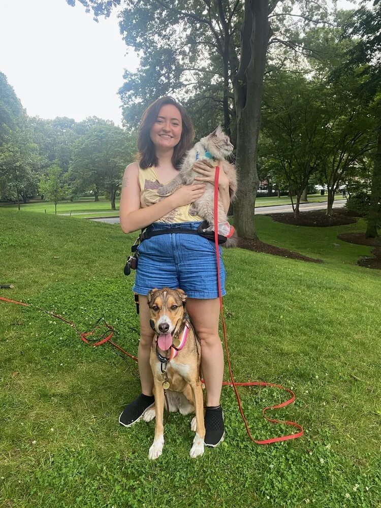 Bethany (Beth) has always been a dog lover. Coming from the middle of nowhere Pennsylvania, Beth and her family have always enjoyed owning pets, from dogs, cats, bunnies, turtles, snakes, lizards, birds, and being adopted by the neighbors' horse and cows. She enjoys being the "dog person" of her family and spending most of her time with the family dogs during family gatherings. In 2024, she got her own border collie puppy, named Sitka, and has been enjoying applying her training skills in Sitka's puppy training! He has already proved to be a great assistant for her at Community Canine as well!