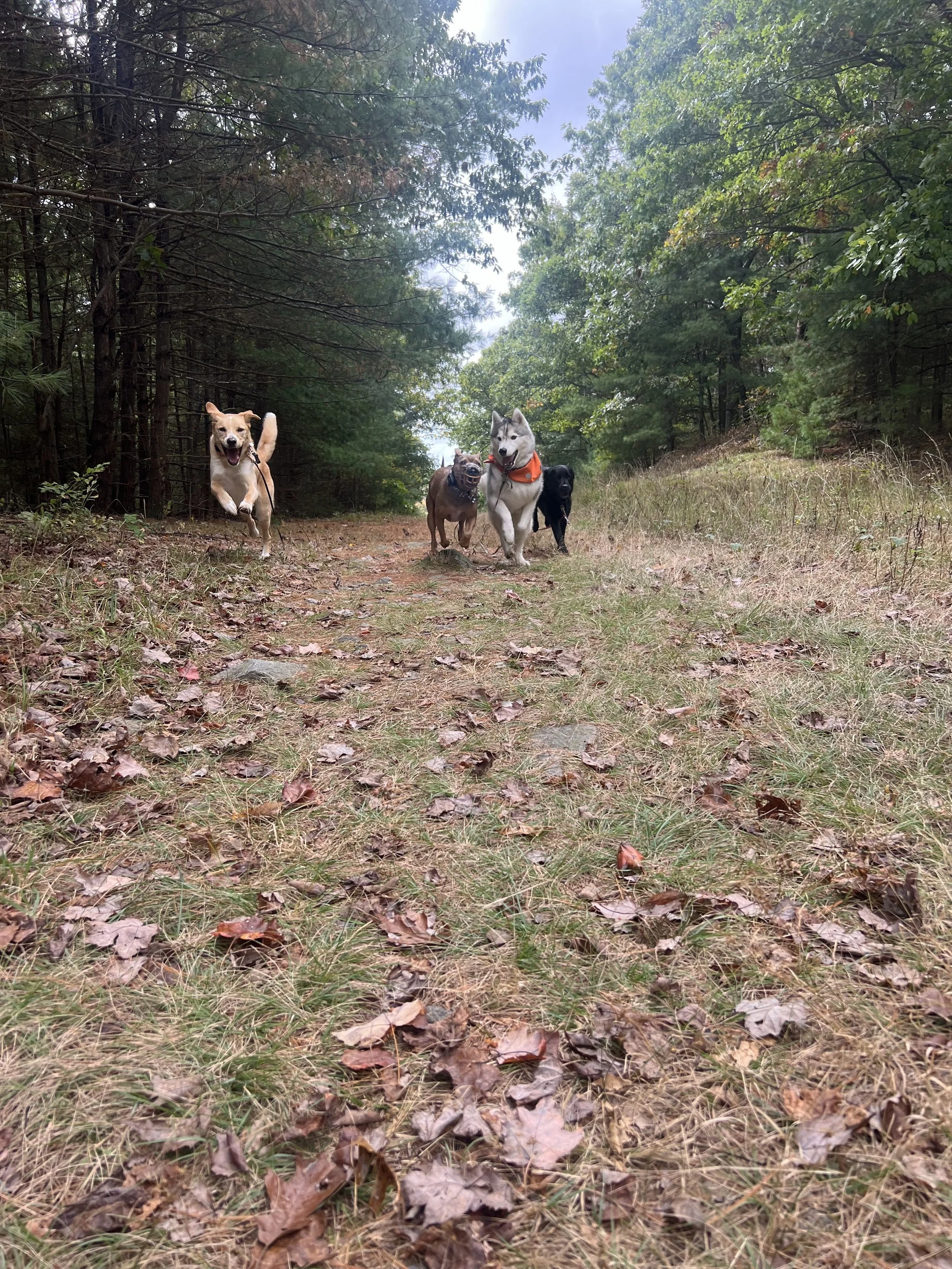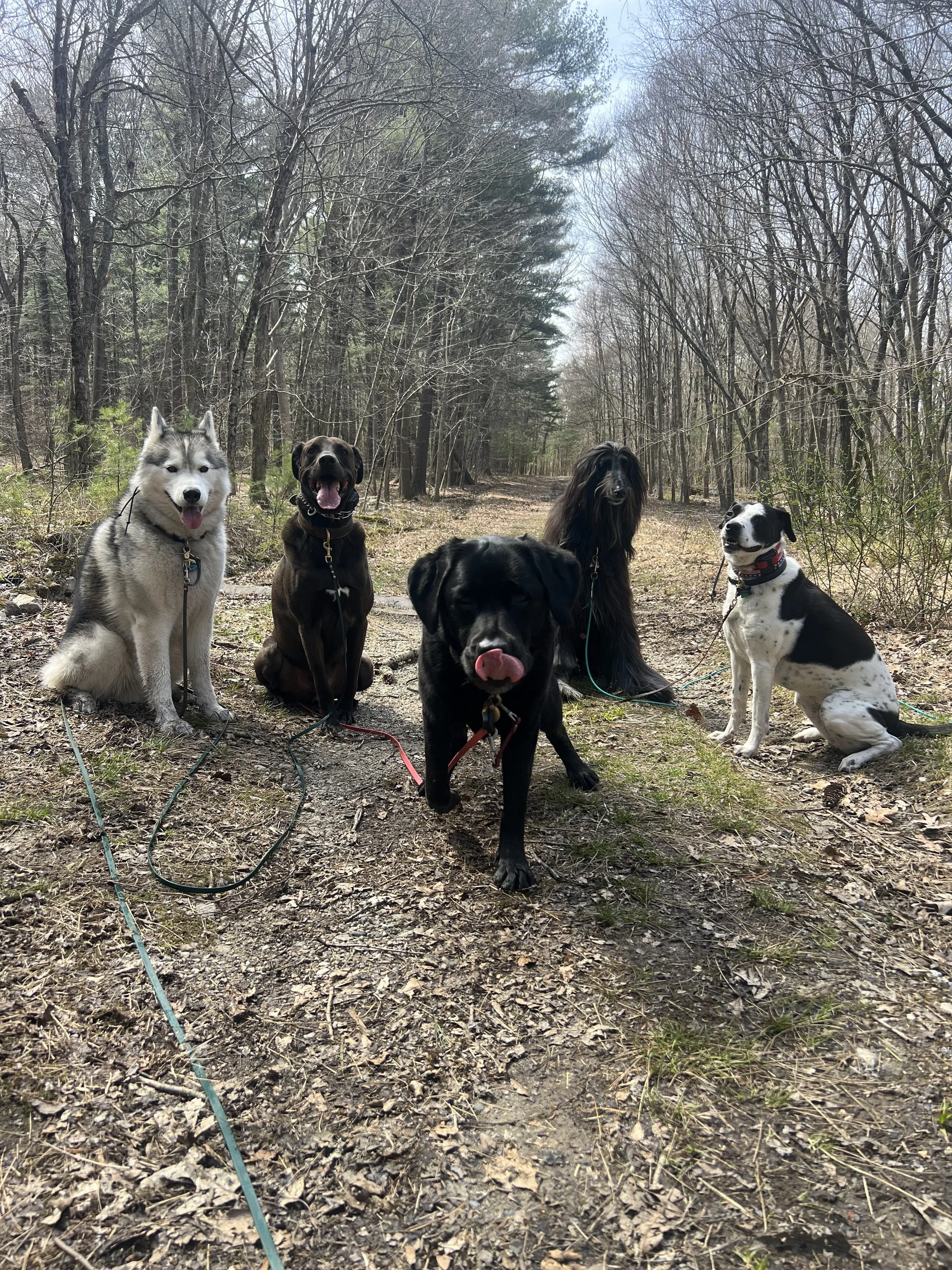 Yukon, Hugh, Nari, Maxi, and Pepper on a Pack Hike